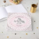 This elegant pastel pink Spooky Cute Bats Halloween Baby Shower Guest Book features a chic hand-drawn baby bat flying among a night sky full of yellow stars and moons, all against a swirly pastel pink background and adorned with spiderweb corners. The back features a photo. Personalise with your event details on the front cover and the binding.