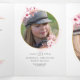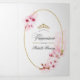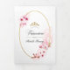 Pink watercolor floral spring quinceanera invite featuring sakura blossom with gold geometric frame customisable to your event specifics.