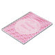 There is a pale pink circle with white marbled patterns on it which contains customisable text so you can include all the important details.