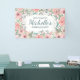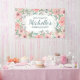 Pretty 100th birthday party custom birthday party horizontal Welcome banner designed with elegant blush pink watercolor floral, greenery, and pearls. Text is fully customisable, so design this sign for anyone of any age. Contact me for assistance with your customisations or to request additional matching or coordinating Zazzle products for your party.