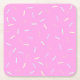 Paper coaster with pink background and sprinkles print.