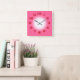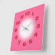 Pink Wall Clock in your choice of Square 10.75 inch or Round in 2 sizes: 8" diameter (medium) or 10.75" diameter (large). Ideal clock for teaching children the time or for viewing at a distance in a shop or lunch room. Available in colours: Yellow, Grey, Electric Blue, Dark Blue and Bright Green. Go to zazzle.com/youbeaut to view.