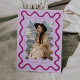 Quirky and unique graduation announcement card to send out to family and friends. There is a hand drawn squiggly wavy line around your photo with the graduate's name below. Pink background.