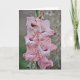 Original photograph of a stalk of Pretty in pink Gladiolus flowers that have a punch of dark magenta pink in the petals. These flowers are also called Glads. This card is blank inside and can be used for any occasion. You can add text as you like or leave as is! This card can also be framed for wall art.
