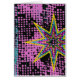 A dusty aqua and mottled black and pink background is the perfect backdrop for a fuchsia, aqua and yellow star.