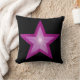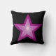 Modern design with a "shining" pink and white star on a black background. Throw pillow with a customisable design for you to personalise with your own text, images and ideas. This is a digital art image created using original photographs and digital techniques and printed onto fabric, it does not shine or contain real sparkles.