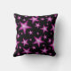 Modern design with a "shining" pink and white stars on a black background. Throw pillow with a customisable design for you to personalise with your own text, images and ideas. This is a digital art image created using original photographs and digital techniques and printed onto fabric, it does not shine or contain real sparkles.
