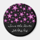 Modern design with "shining" pink and white stars on a black background. Fridge magnet with a customisable design for you to personalise with your own background colour, text, images and ideas. Please note that this is a printed image created using original photographs and digital techniques, it does not shine or contain real sparkles.
