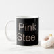 Pink Steel mugs are for coffee drinkers, hot chocolate drinkers, and strong drinkers who like the colour pink. Pink Steel is Steamy Raimon original calligraphy art.