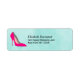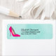 Personalised address labels with a high heel stiletto shoe in hot pink. Set on a mint green watercolor background.