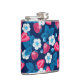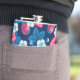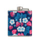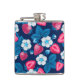 Pink strawberries on blue hip flask