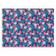 Pink strawberries on blue tablecloth