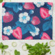 Pink strawberries on blue tea towel