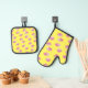 Pink strawberry cupcakes on yellow oven mitt & pot holder set