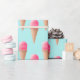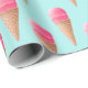 Pink Strawberry Ice Cream Cone Pattern, Blue Wrapping Paper