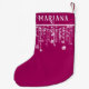 Pink and white string lights sparkles Christmas stocking with a cute whimsical fun lights and name for a festive Holiday season.