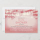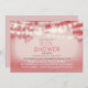 Light pink and elegant night lights rustic bridal shower invitation for dinner in the garden under the trees and hanging lights.