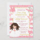 Pink Stripe Brunette Girl First Holy Communion Invitation