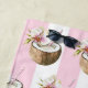 This pink and white striped bride beach towel has tropical pina colada drinks served up in a pineapple with an orchid flower and can be personalised with a name and bridal party title by clicking "personalise this template."