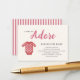 Welcome your baby girl with this charming enclosure card, perfect for your baby shower book request. The design features a playful pink and cream stripe pattern on one side, and a sweet message on the other, asking guests to bring a book for baby instead of a traditional card. The phrase 'A Girl to Adore' sets a delightful tone for this special occasion. This card is a lovely way to encourage a love of reading from day one and build a beautiful library for your little one. It’s a thoughtful touch that makes the invitation complete and sets a heartwarming theme for your celebration.