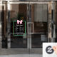 Give your store front a coquette touch with an open hours window cling with an illustration of a striped bow in pink and white on a green frame. Personalize the window cling with your store's opening hours or your salon's opening hours. Add phone number and website too so your customers and clients know where to book an appointment or get more information about your small business. The fonts are easy to read, but still cute and matching the overall vibe. The perfect opening hours window cling for cute boutiques, beauty salons, hair salons, pet groomers, candy stores, ice cream shops, and more!