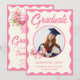 Pink Striped Bows & Ribbons Graduation Photo Invitation