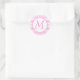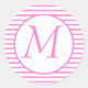A simple, pink-striped, monogrammed sticker. This sticker is useable for envelope seals, gift tags, and birthday cards. This personalised sticker is perfect for all ages and occasions.