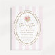 Charming second birthday invitation featuring a soft pink striped design with a delicate tea party aesthetic. The elegant layout and sweet details create a refined and playful look, perfect for a “Tea for Two” celebration.