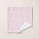 Pretty bath towel set done in pale pink and white featuring stripes, on the bath towel and a big one letter monogram. The wash cloth is done in a pink and white damask pattern and the hand towel is pink with a white band, on one side and a white single letter monogram. Personalise the letter to suit your needs.