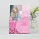 Pink shade colour stripes with floral design birthday party invitation with your photo on the front of the card. Simple trendy invite card perfect for a stylish female bday celebration. Can be customised to any age.