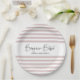 Designed to match the colour of our nursery collection. The design features simple yet modern pink and white stripes, a header that reads "Bonjour Bebe", meaning hello baby, and one line of text for personalisation.