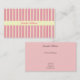 This pretty business card is perfect for any business or occupation. It features a pink background with yellow stripes on the top and bottom of the front. A yellow stripe runs through the centre. The back is a solid pink. All text is customisable.