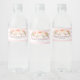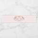 Custom text baby shower water bottle label in pretty light pastel pink and white stripes pattern with peach pink watercolor flowers.