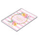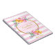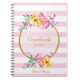 Adorable and editable wedding guest book with a beautiful spring roses flower bouquet, a gold frame on pink and white stripes in the background. Perfect for you.
