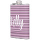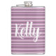 The flask itself is fine. It’s a cheap flask, obviously bought in bulk, however am prepared to overlook that. Given that it is a personalized item, I would have liked to have seen gift boxing instead of the generic packaging. Terrible printing, and/or quality. It’s a cheap, tacky vinyl. It is not cut straight and is also applied in a way that it is overhanging the bottom, causing the glue to catch on items and it will eventually roll and tear, damaging the wrap.