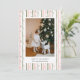 Holiday card featuring a cute pastel pink and green wallpaper background with one family photo paired with a holiday greeting and your name and year in a sans serif font.