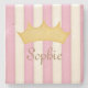 These pretty pink and cream striped paper napkins with your child's name under a golden crown is the perfect way to serve your guests at a princess themed party, sleepover, or other girly occasion.