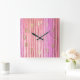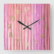 Pink Stripes Square Wall Clock