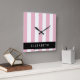 Pink Stripes, Striped Pattern, Lines, Your Name Square Wall Clock