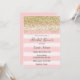 Bridal shower invitation with faux gold glitter and pink stripes watercolor background.