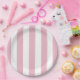 Pink Stripes, White Stripes, Striped Pattern Paper Plate