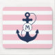Pink Stripes with Nautical Anchor and Monogram Mouse Pad