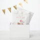 Modern minimalist " it's a girl " nursery baby shower theme, design feature watercolor rabbit in pink cloth holding the balloon and her baby carriage stroller. You will find baby shower invitation, baby shower party decor supplies in this collection. Customise your own word and colour using the edit design.
