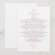 Simple with chic elegance describes this sophisticated Subtle Damask Wedding Information Card with a light pink damask flourish background. This modern info card is perfect for a traditional wedding and can be easily customised with your wedding details. For more customisation options, click on the Customise It button.