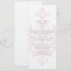 Simple with stylish elegance describes this sophisticated Subtle Damask Wedding Menu Card with a light pink damask flourish background. This classy menu is perfect for a traditional wedding and can be easily customised with your wedding details. For more customisation options, click on the Customise It button.