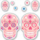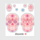 Cute pink sugar skull sticker set. Pink Day of the Dead decorative skulls, hearts and flowers stickers.