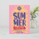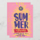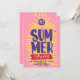 A grunge-style invitation to a summer party showing a pink backdrop with a palm-leaf overlay. The card is easy to customise with your wording, font and font colour. Not exactly what you're looking for? All our products can be custom designed to meet your needs at no extra charge. Simply contact us at askpixieprints@aol.com. Coordinating products available at your request at no additional charge.