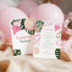 This trendy Bachelorette party invitation features a fun grouping of pink summer time accessories accented by tropical monstera leaves All the details of can be edited to meet the needs of your event. The back features all the weekend details and is framed by pink pool accessories.