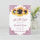Pink and sunflower wedding save the date card featuring sunflowers, string lights, burlap hearts and delicate floral lace.