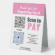 Show customers they are supporting a local business when they pay with Venmo. What is a Venmo payment? It is a digital payment system where customers can scan your business QR code image and pay electronically. Learning how to accept Venmo payments is as easy as signing up on your phone. Then just create your own Venmo, PayPal, or Cash App QR code image Pay HERE sign. Digital payment systems are popular at craft shows, popups, and Farmers Markets. Perfect when customers run out of cash. Customise with your business name, social media information and custom text. Pink Venmo sign for your support small business booth. Perfect for a woman-owned business.
